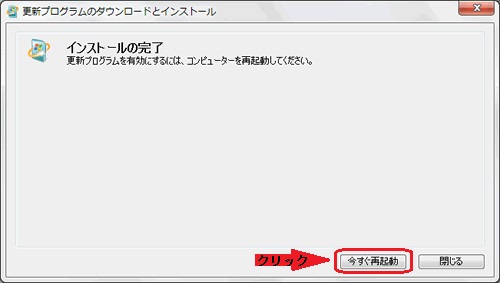 17.“インストールの完了 更新プログラムを有効にするには、コンピューターを再起動してください。”と言うメッセージ画面が表示されます。
