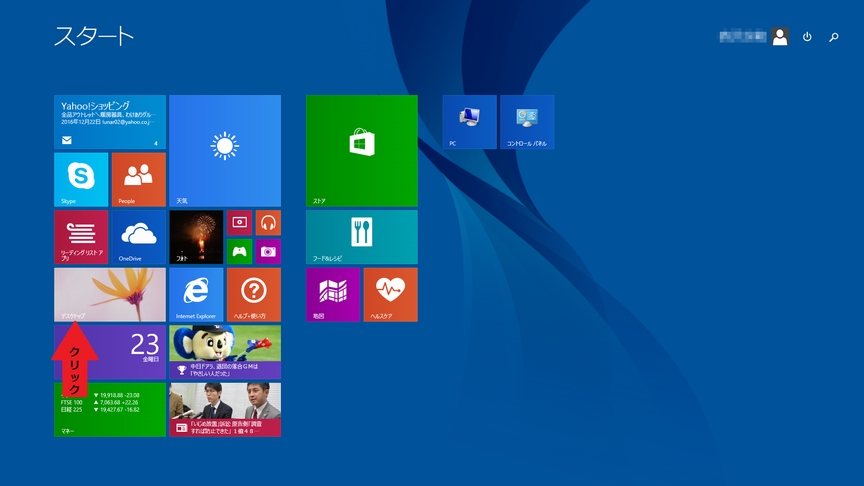 2.スタート画面の[デスクトップ]タイルをクリックします。